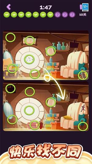 3、主要玩法是在两幅相似图片中找出细微差别,依靠敏锐观察力发现隐藏的不同位置。