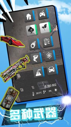 失控世界模拟器是以破坏与解压为核心的休闲益智类游戏。玩家将在虚拟城市中自由探索,使用各种武器和工具摧毁建筑释放压力。通过导弹、核弹、战机等装备完成破坏任务,还能利用自然现象提升效率。