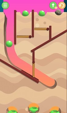 6.障碍物也是可以利用的,如果碰到一块斜板能让小球顺着它溜进洞中。