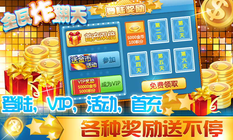 1、游戏金币送不停,一天更比一天多!